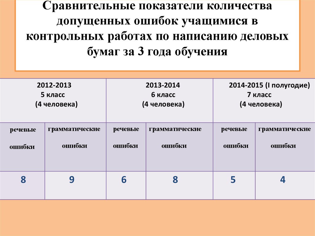 Сравнительные показатели количествадопущенных ошибок учащимися в