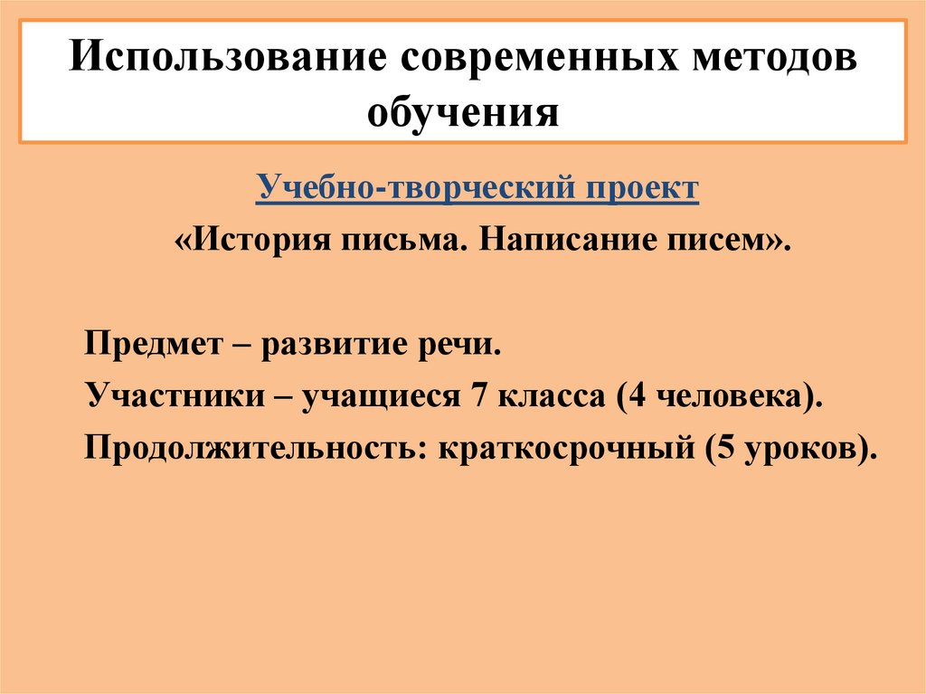 Использование современных методовобучения