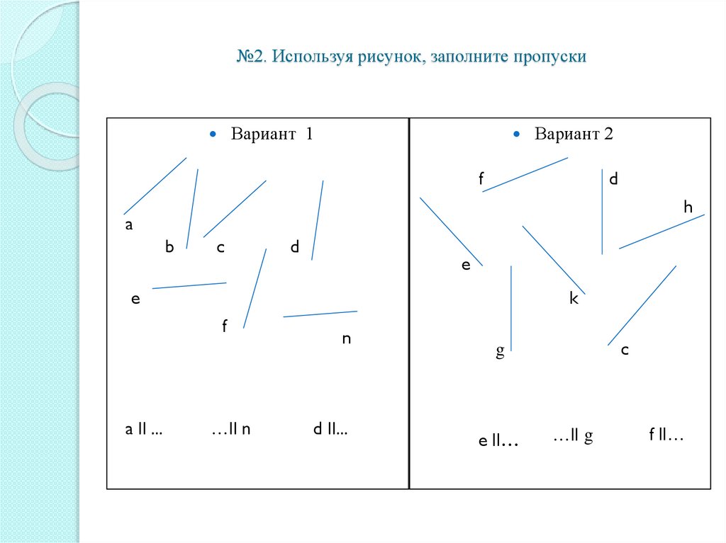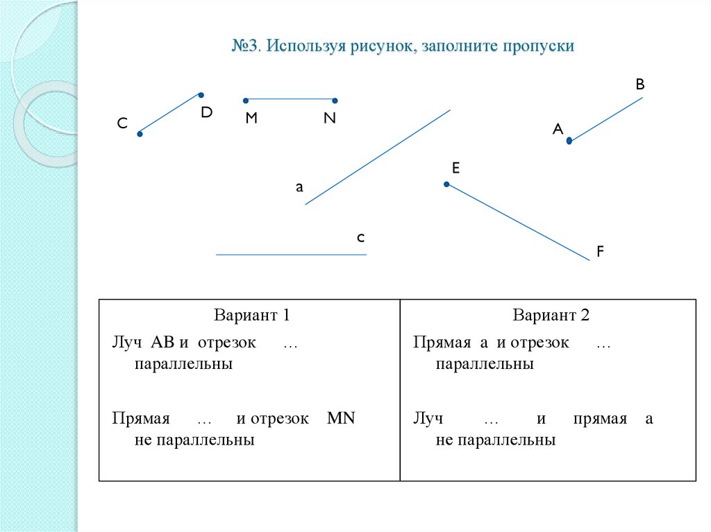 Диктант по математике на тему: "Определение параллельных прямых, отрезков, лучей"