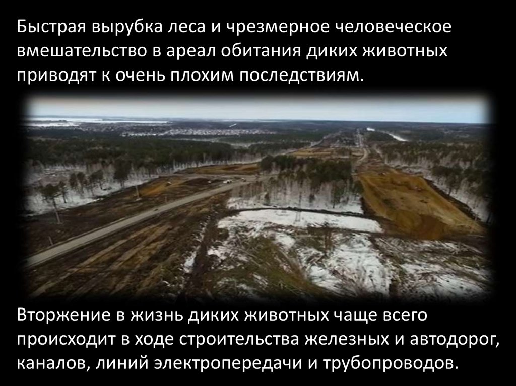 Быстрая вырубка леса и чрезмерное человеческоевмешательство в ареал обитания диких животных