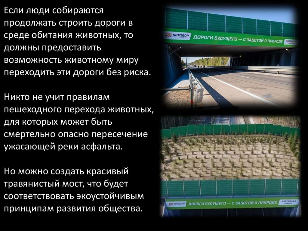 перекрестки для животных, специальные мосты и тоннели,