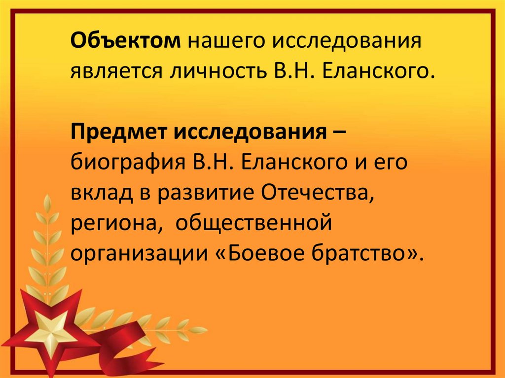 Объектом нашего исследованияявляется личность В.Н. Еланского.