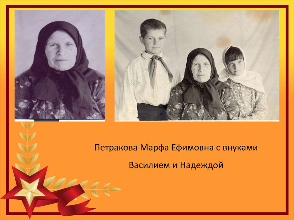Петракова Марфа Ефимовна с внукамиВасилием и Надеждой