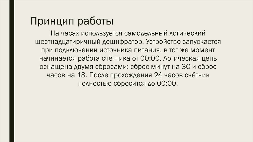 Принцип работыНа часах используется самодельный логический