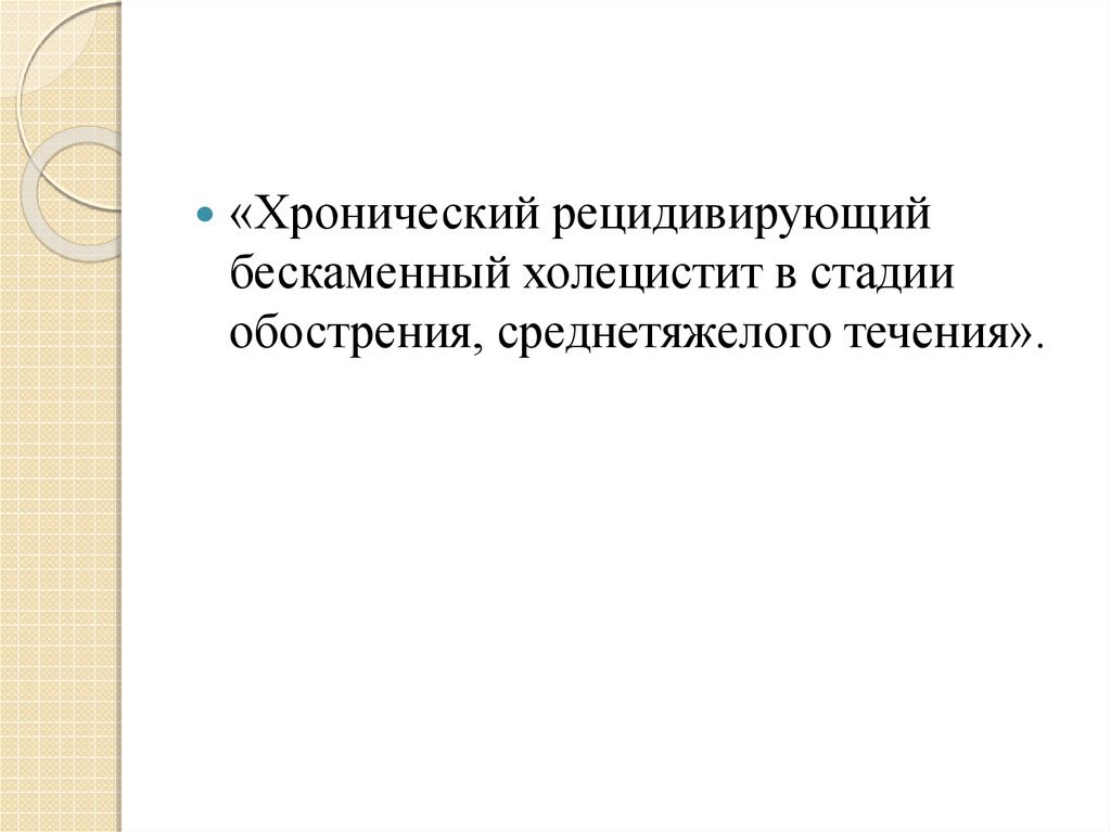 «Хронический рецидивирующийбескаменный холецистит в стадии