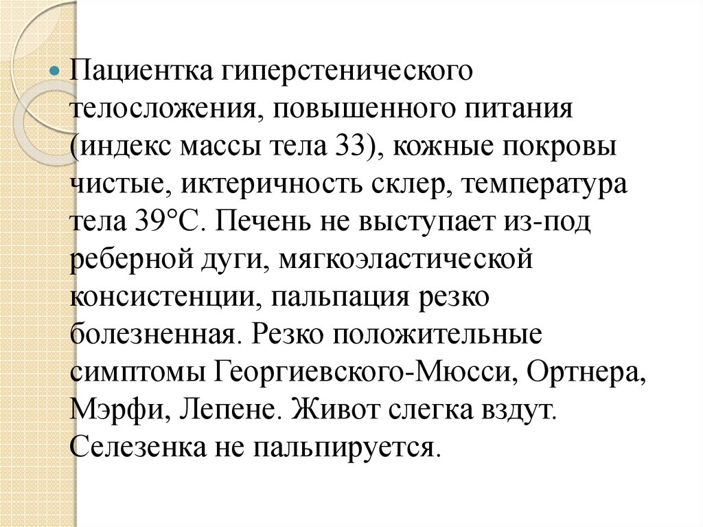 Пациентка гиперстеническоготелосложения, повышенного питания