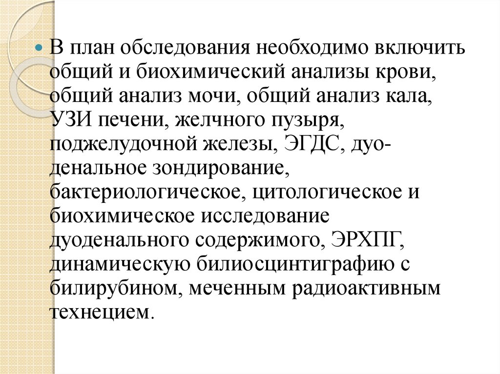 В план обследования необходимо включитьобщий и биохимический анализы крови,