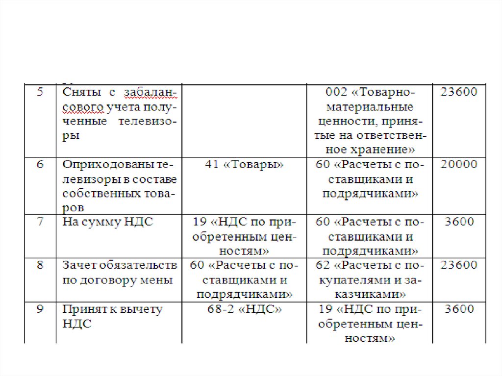 • Бухгалтеру той организации, которая получила ценностипо бартеру первой, следует учесть, что вплоть до