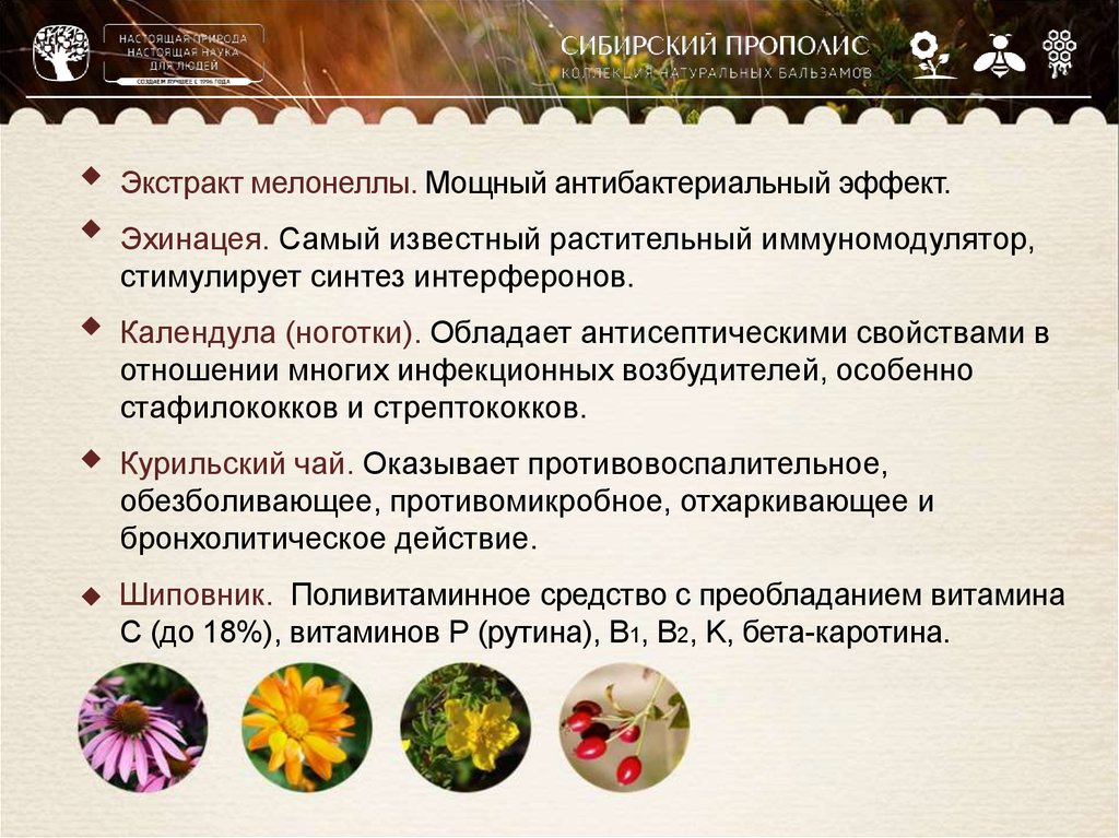 Экстракт мелонеллы. Мощный антибактериальный эффект.Эхинацея. Самый известный растительный иммуномодулятор,