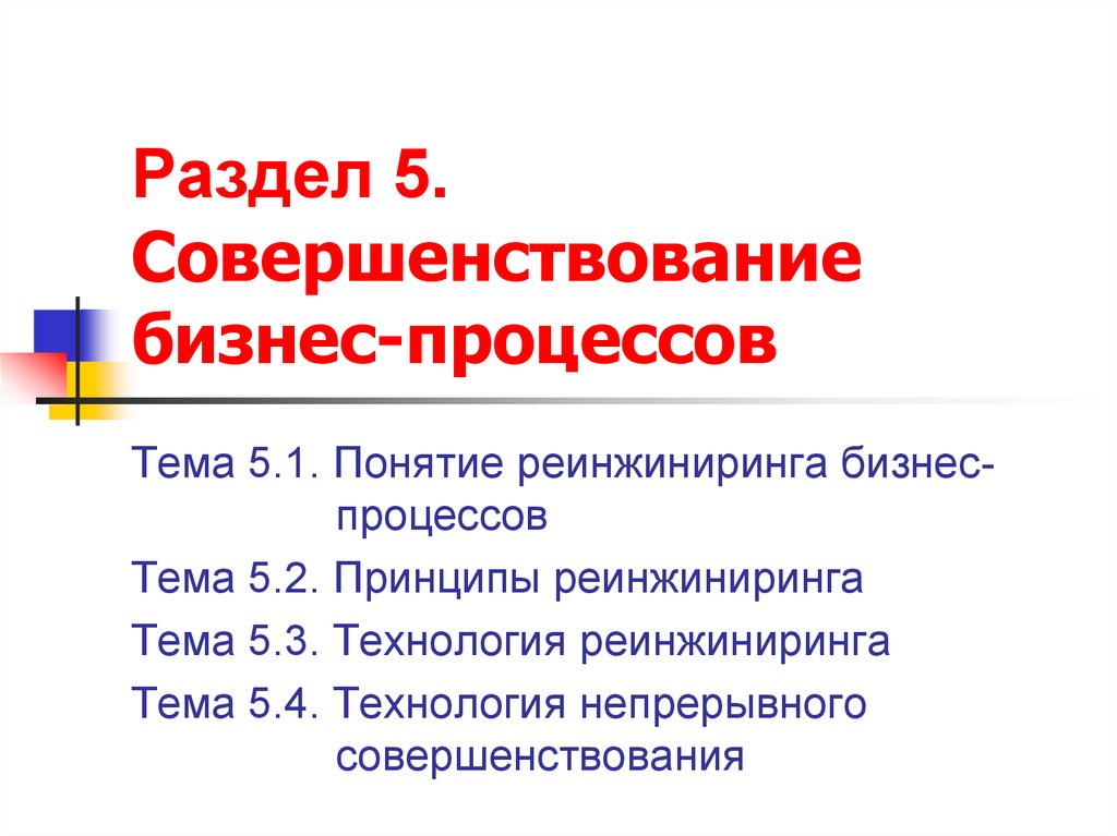 Тема 5.1. Понятие реинжиниринга бизнеспроцессовТема 5.2. Принципы реинжиниринга
