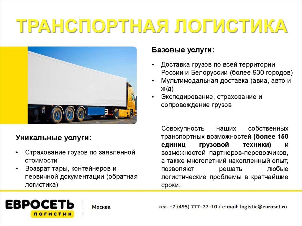 ТРАНСПОРТНАЯ ЛОГИСТИКАБазовые услуги: