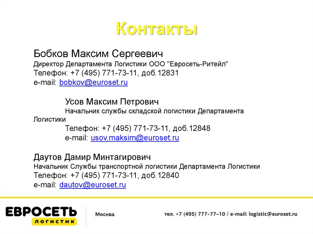 Директор Департамента Логистики ООО "Евросеть-Ритейл"