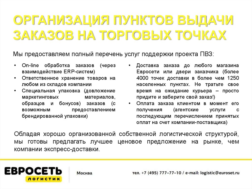 ОРГАНИЗАЦИЯ ПУНКТОВ ВЫДАЧИЗАКАЗОВ НА ТОРГОВЫХ ТОЧКАХ