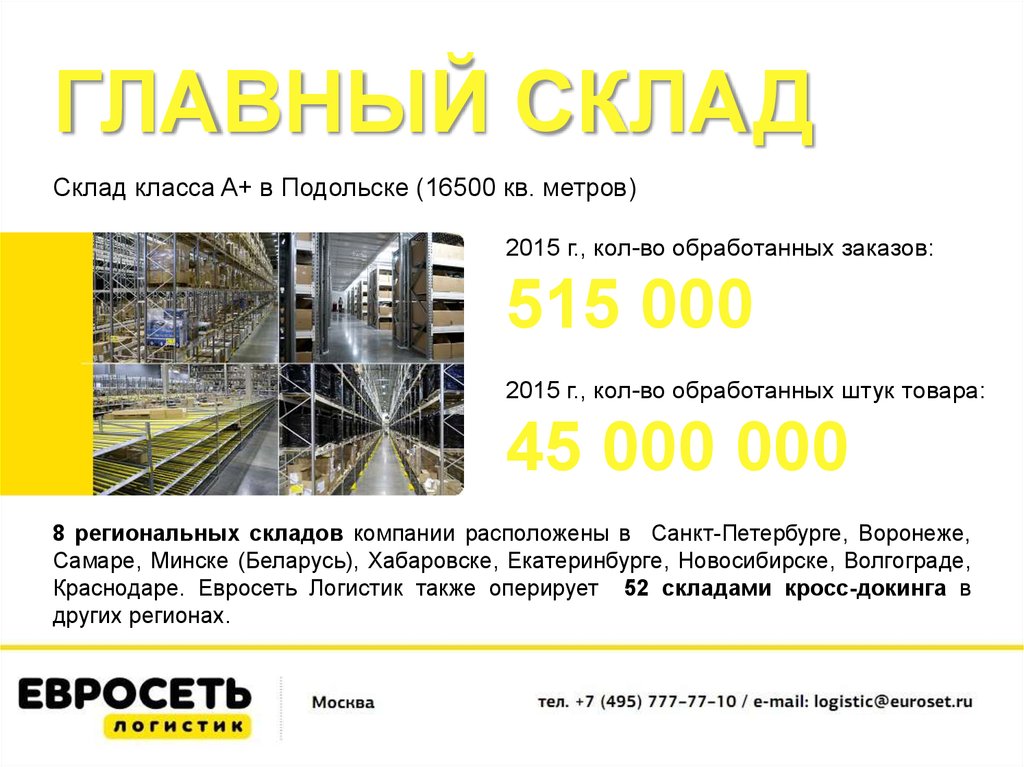 Краснодаре. Евросеть Логистик также оперирует 52 складами кросс-докинга в