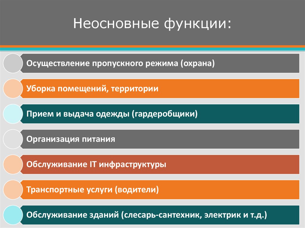 Неосновные функции:Осуществление пропускного режима (охрана)