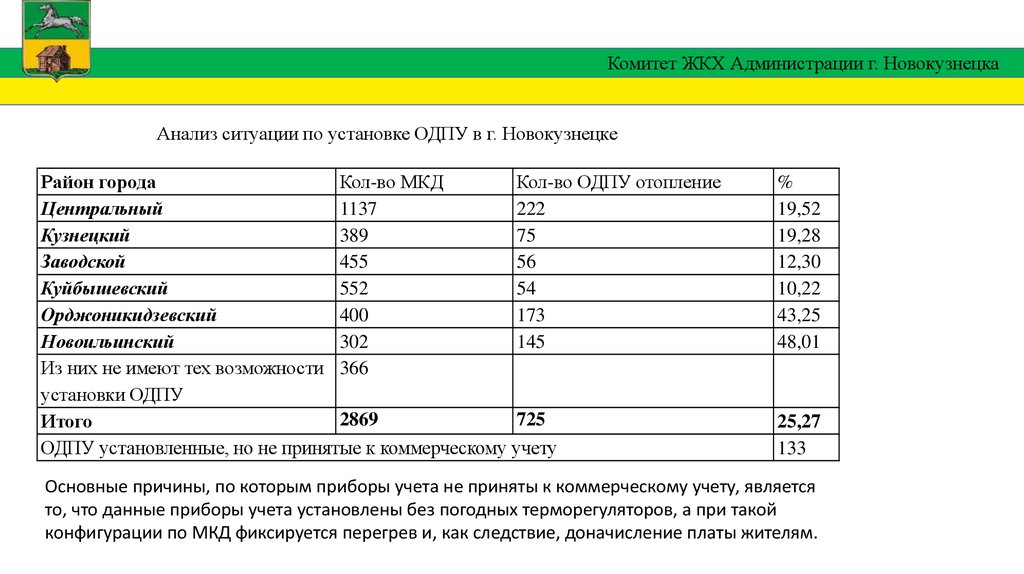 Комитет ЖКХ Администрации г. НовокузнецкаАнализ ситуации по установке ОДПУ в г. Новокузнецке