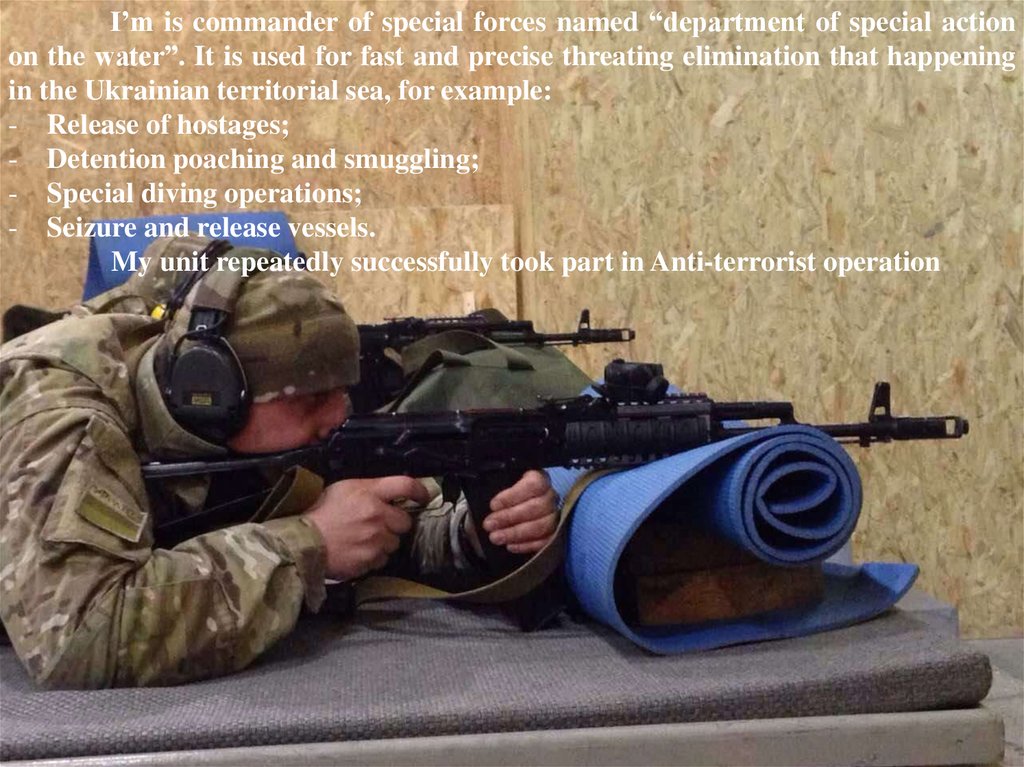 I’m is commander of special forces named “department of special actionon the water”. It is used for fast and precise threating elimination that happening