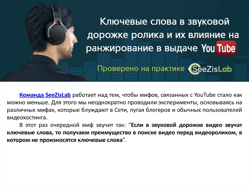 Ключевые слова в звуковой дорожке ролика и их влияние на ранжирование в выдаче YouTube - SeeZisLab