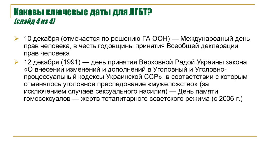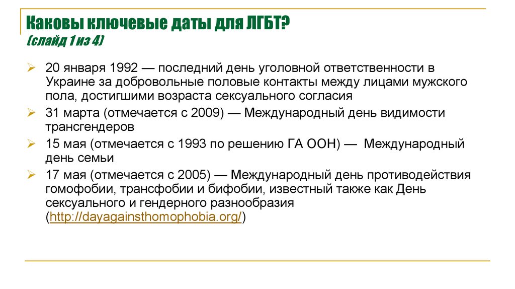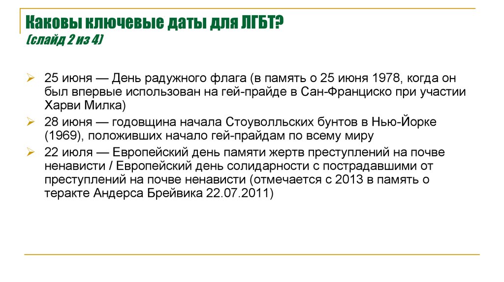 Каковы ключевые даты для ЛГБТ?(слайд 4 из 4)