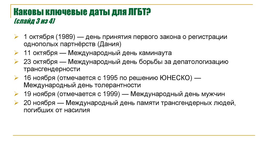 Каковы ключевые даты для ЛГБТ?(слайд 3 из 4)