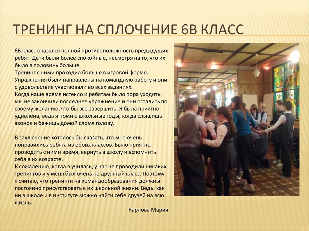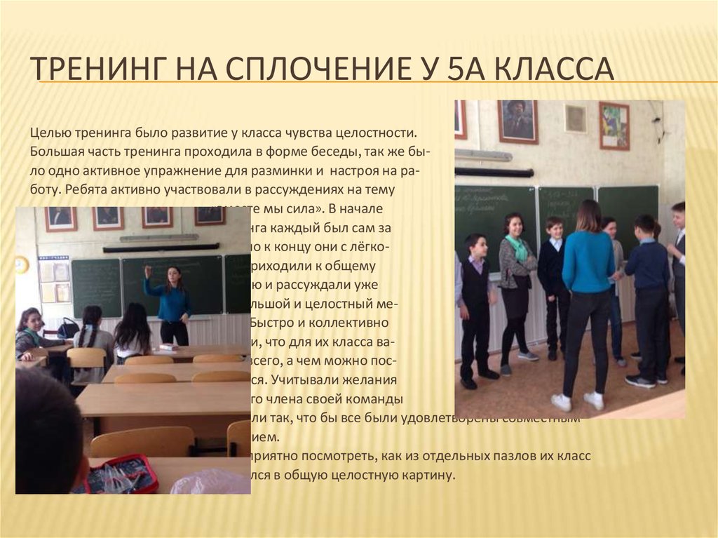 тренингов и у меня был очень не дружный класс. Поэтому