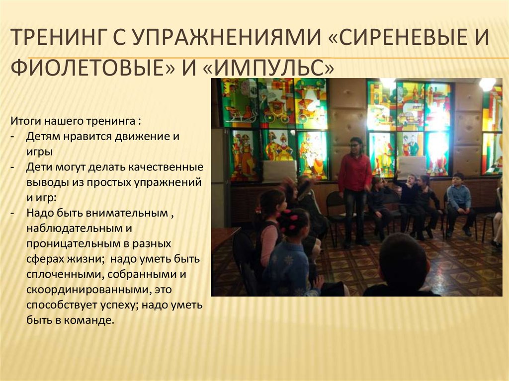 ТРЕНИНГ С УПРАЖНЕНИЯМИ «СИРЕНЕВЫЕ ИФИОЛЕТОВЫЕ» И «ИМПУЛЬС»