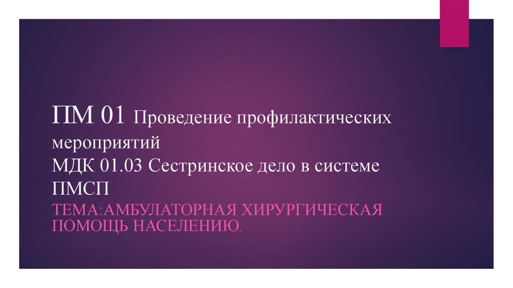 1. ПМ 01 Проведение профилактических мероприятий МДК 01.03 Сестринское дело в системе ПМСП