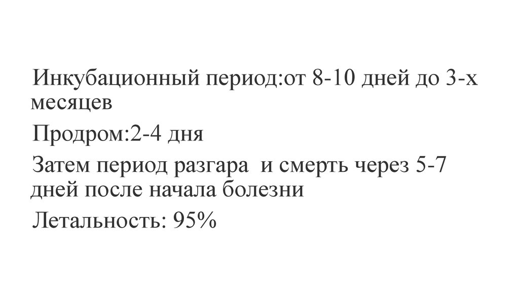 Инкубационный период:от 8-10 дней до 3-хмесяцев