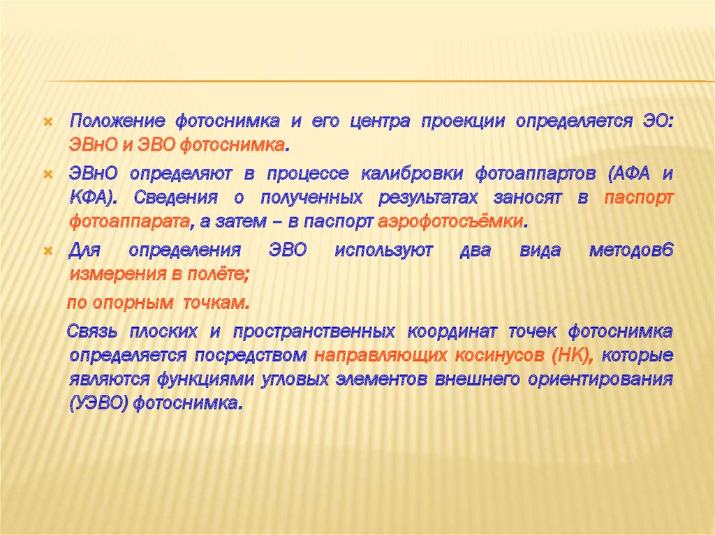 ОПРЕДЕЛЕНИЕ НАПРАВЛЯЮЩИХ КОСИНУСОВ ПО ЭВОФОТОСНИМКА