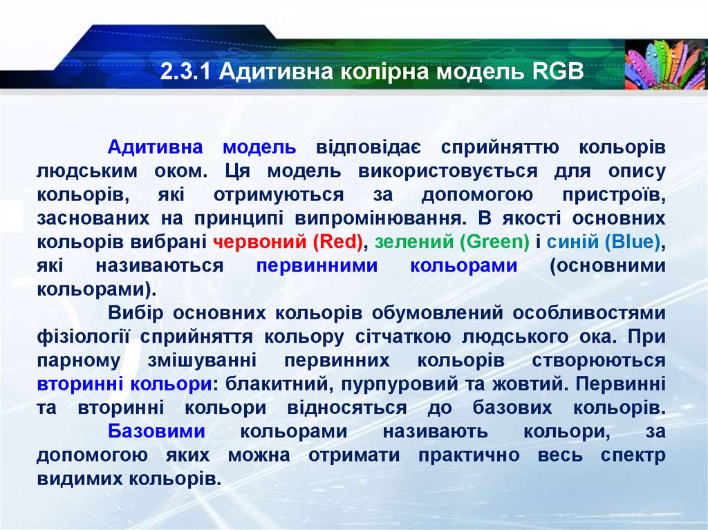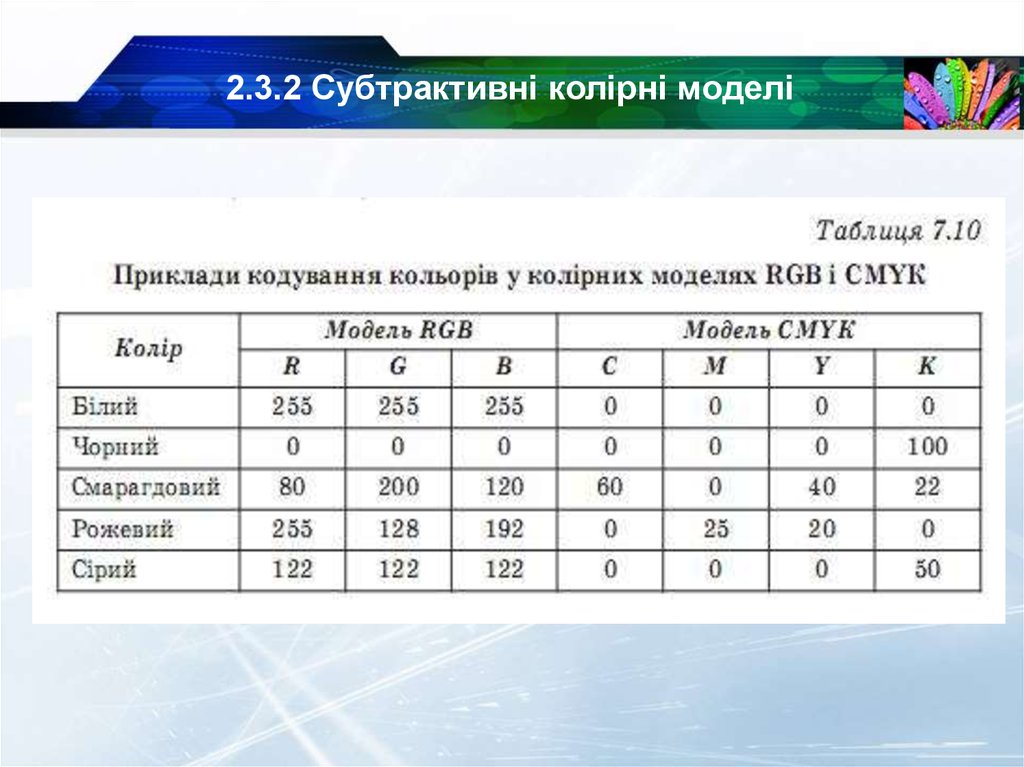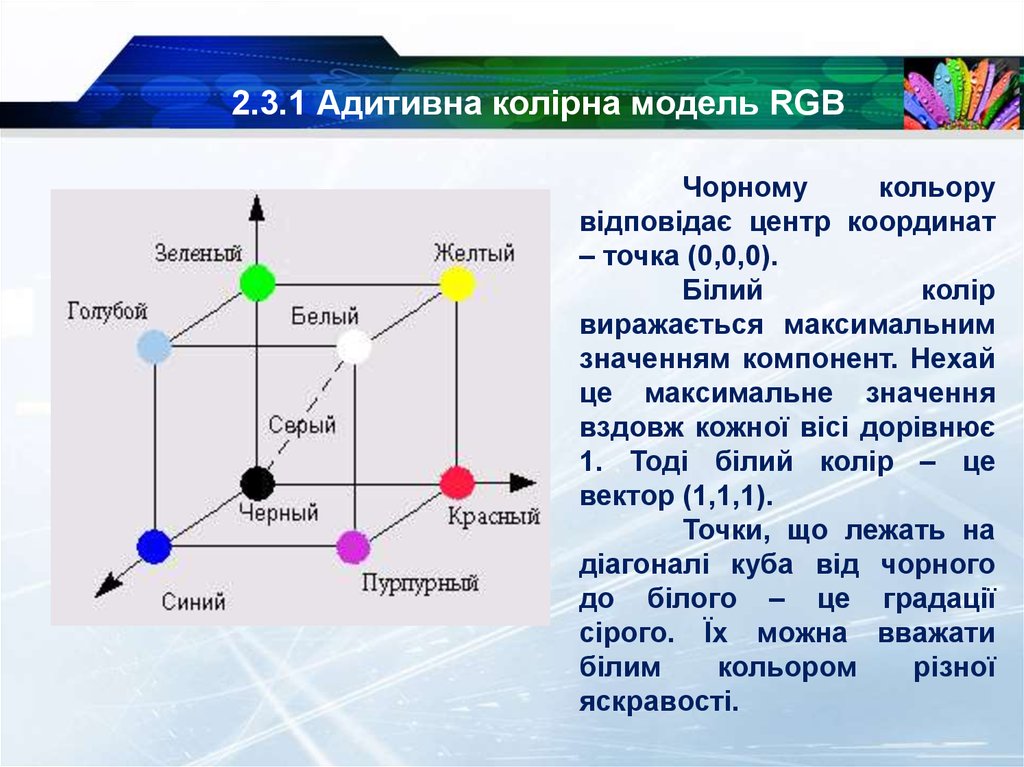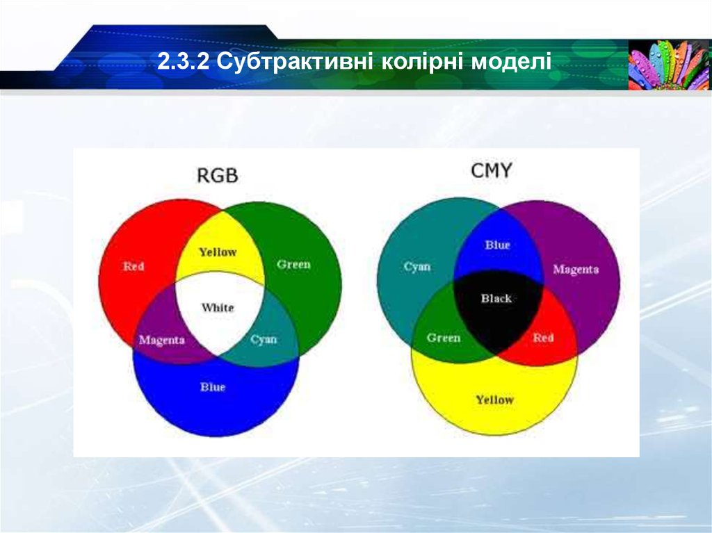 2.3 Типи колірних моделейБільшість графічних пакетів дозволяють оперувати