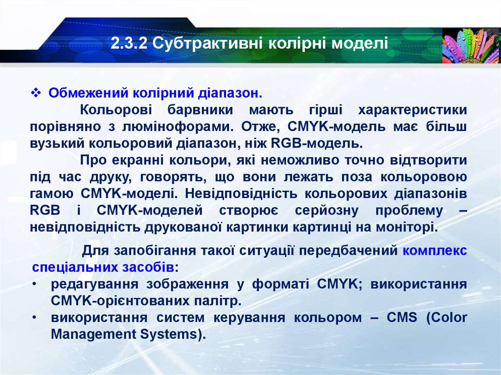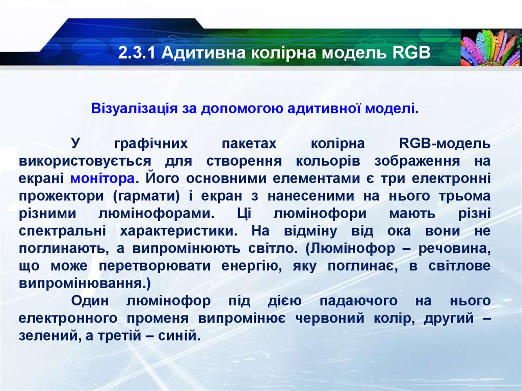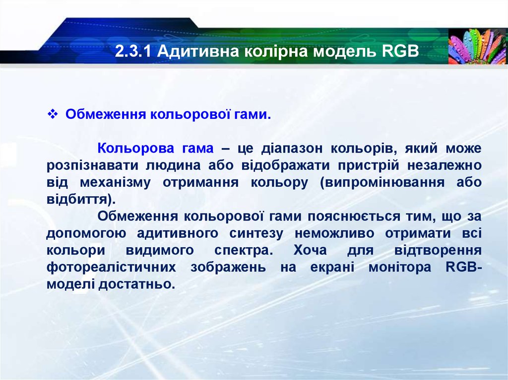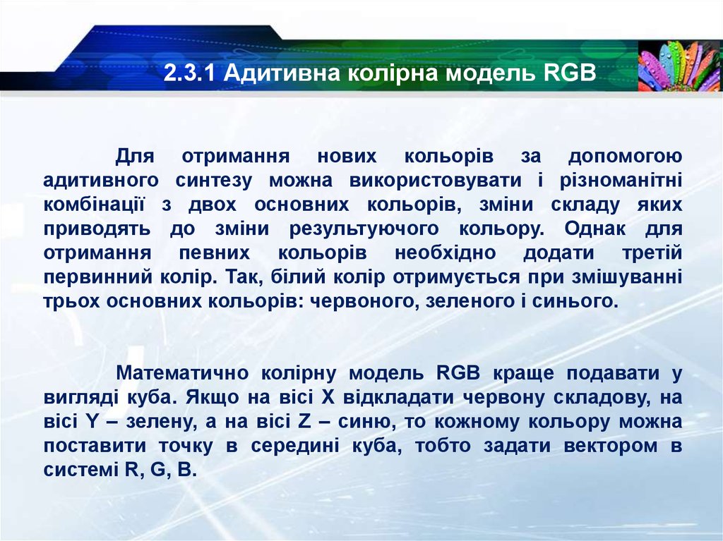 2.3 Типи колірних моделейБільшість графічних пакетів дозволяють оперувати