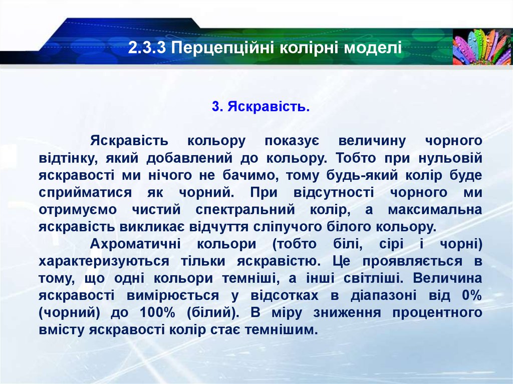 2.3.3 Перцепційні колірні моделі3. Яскравість.