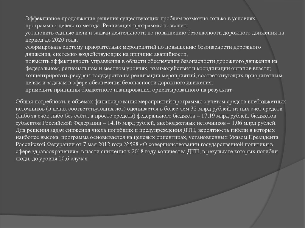 дорожного движения и привести к достижению целевого ориентира сокращения числа погибших в ДТП