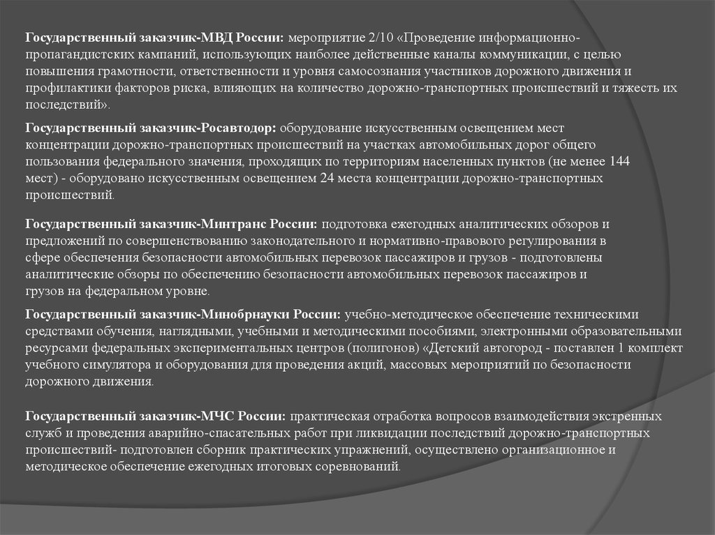 Государственный заказчик-МВД России: мероприятие 2/10 «Проведение информационнопропагандистских кампаний, использующих наиболее действенные каналы коммуникации, с цельюповышения грамотности, ответственности и уровня самосознания участников дорожного движения и