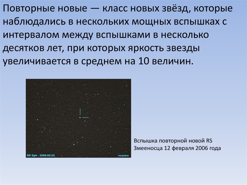 Повторные новые — класс новых звёзд, которыенаблюдались в нескольких мощных вспышках c