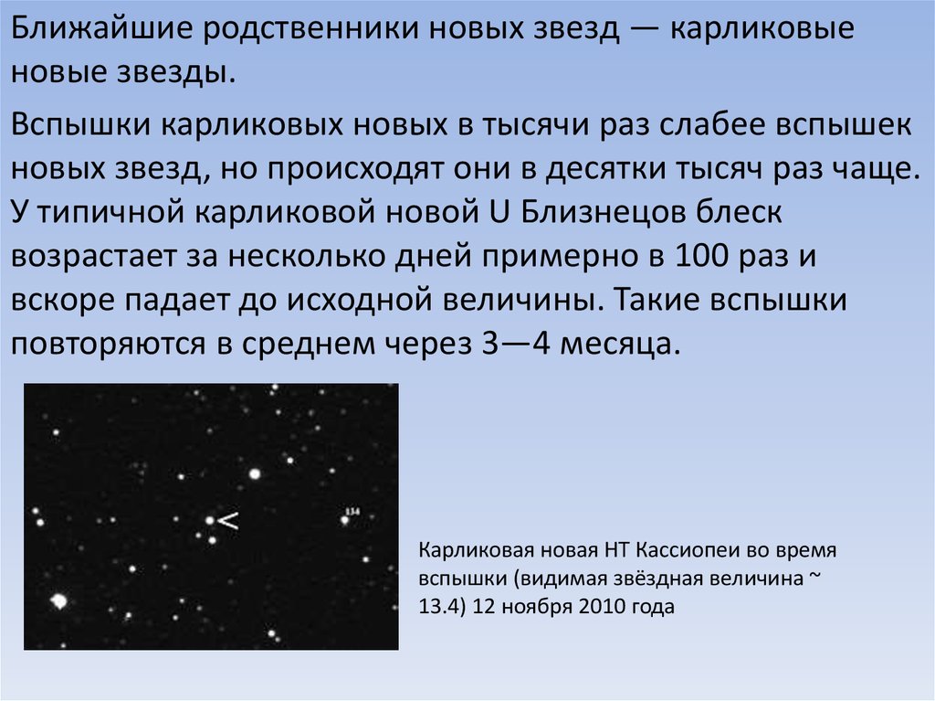 Ближайшие родственники новых звезд — карликовыеновые звезды.