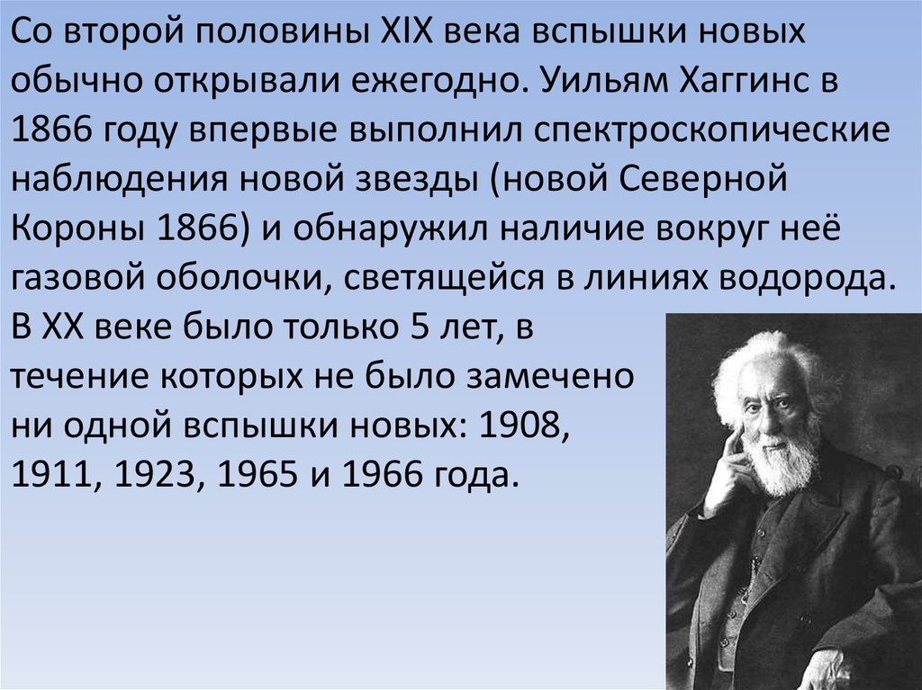 Со второй половины XIX века вспышки новыхобычно открывали ежегодно. Уильям Хаггинс в