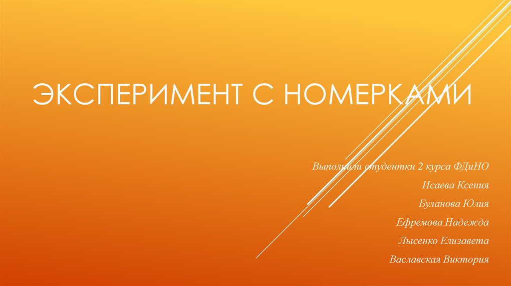 ЭКСПЕРИМЕНТ С НОМЕРКАМИВыполнили студентки 2 курса ФДиНО
