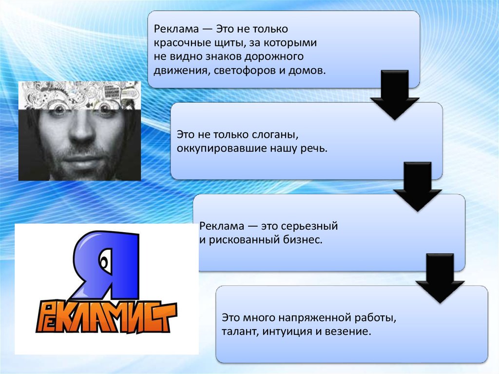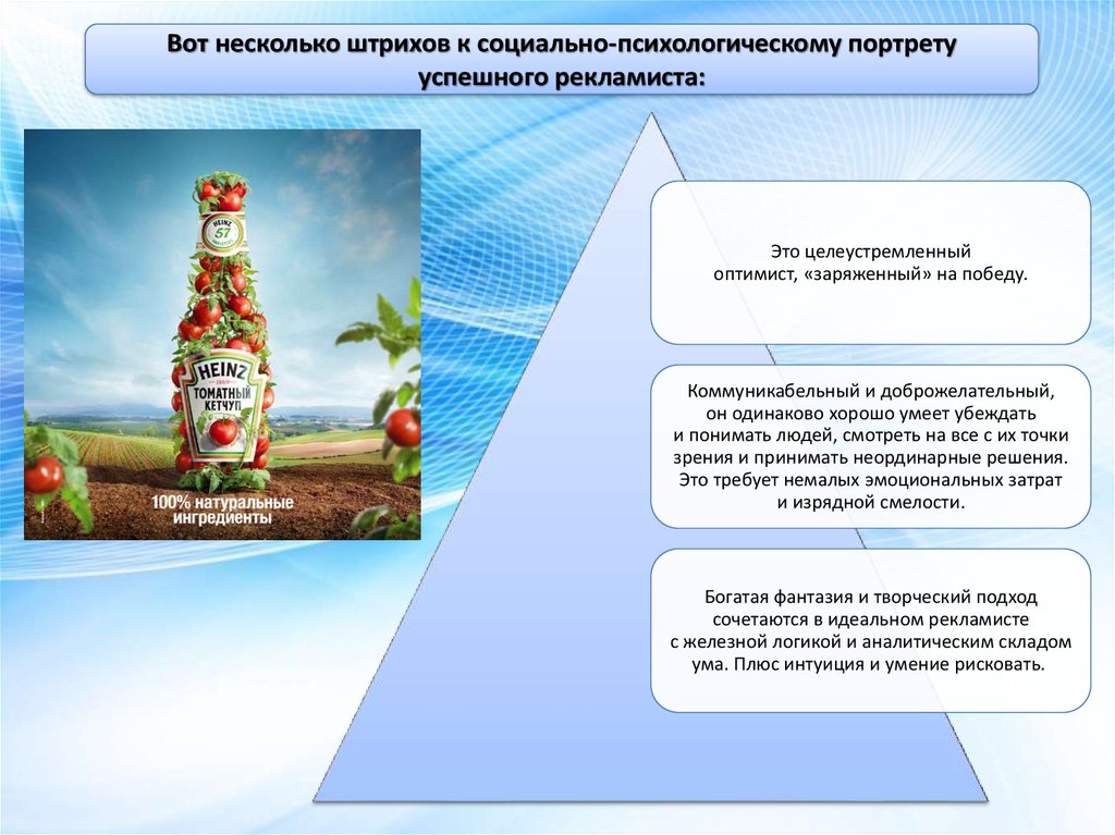 Вот несколько штрихов к социально-психологическому портретууспешного рекламиста: