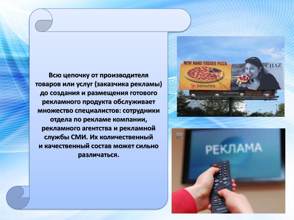 Всю цепочку от производителятоваров или услуг (заказчика рекламы)