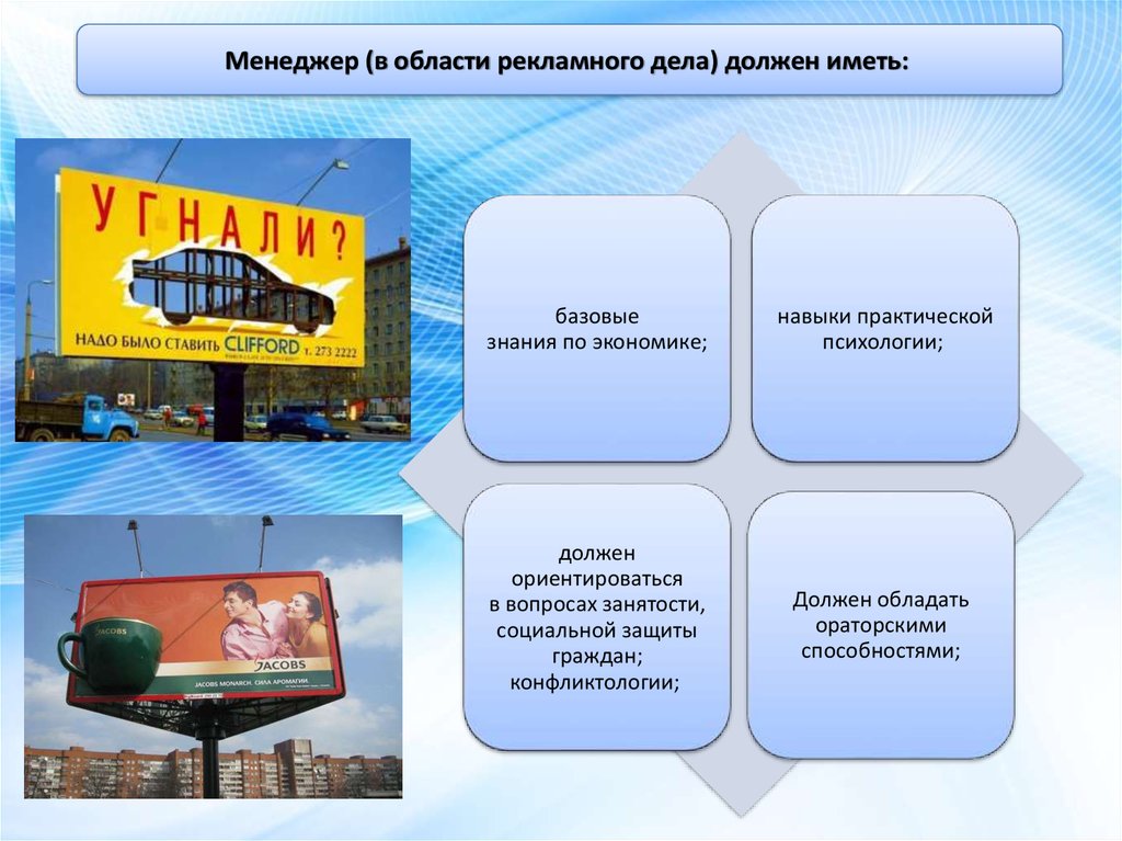 Менеджер (в области рекламного дела) должен иметь:базовые