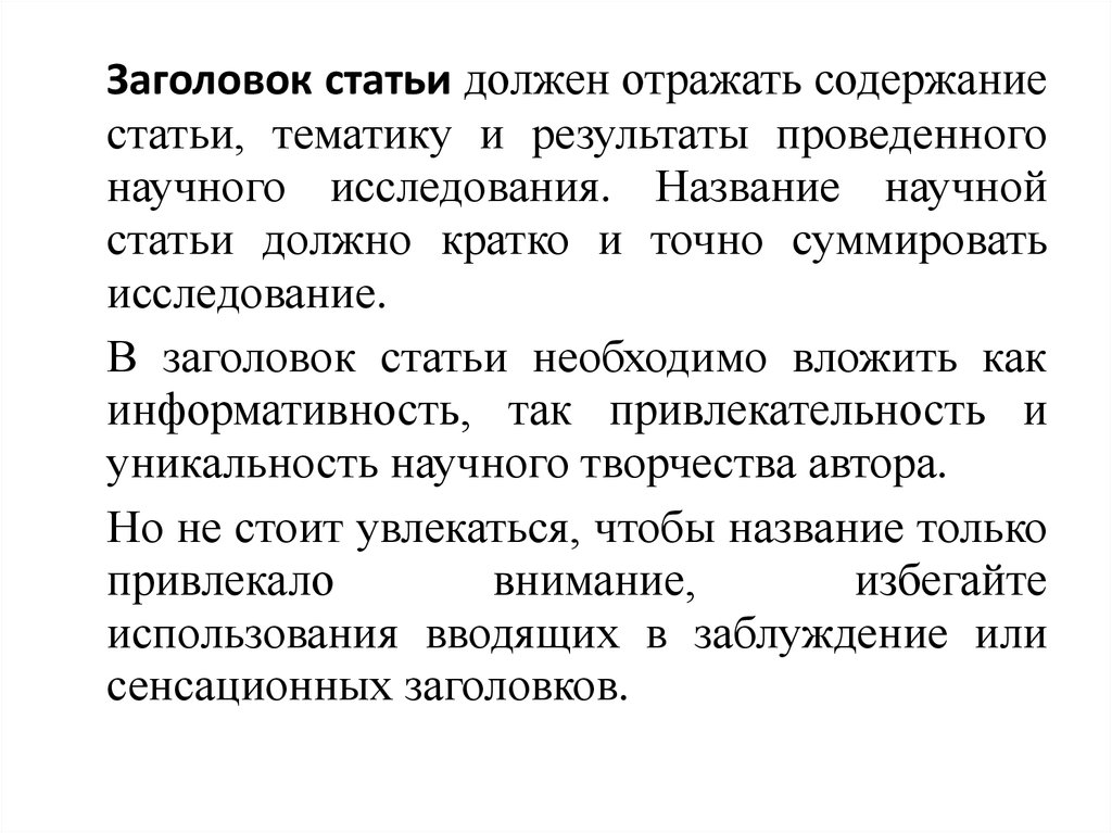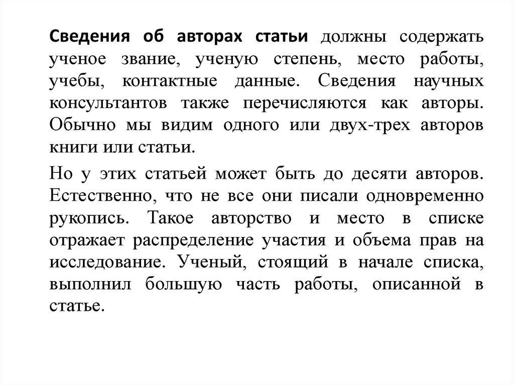 Структура научной статьи включает не толькосам текст с основным содержанием, но и другие