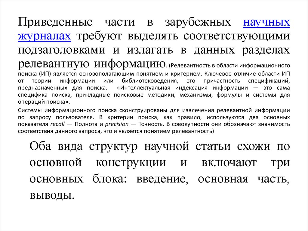 Приведенные части в зарубежных научныхжурналах требуют выделять соответствующими