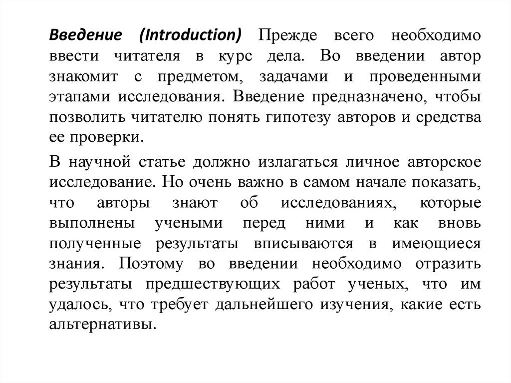Введение (Introduction) Прежде всего необходимоввести читателя в курс дела. Во введении автор