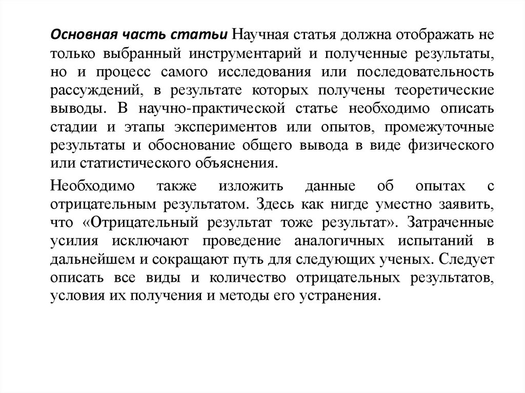Основная часть статьи Научная статья должна отображать нетолько выбранный инструментарий и полученные результаты,