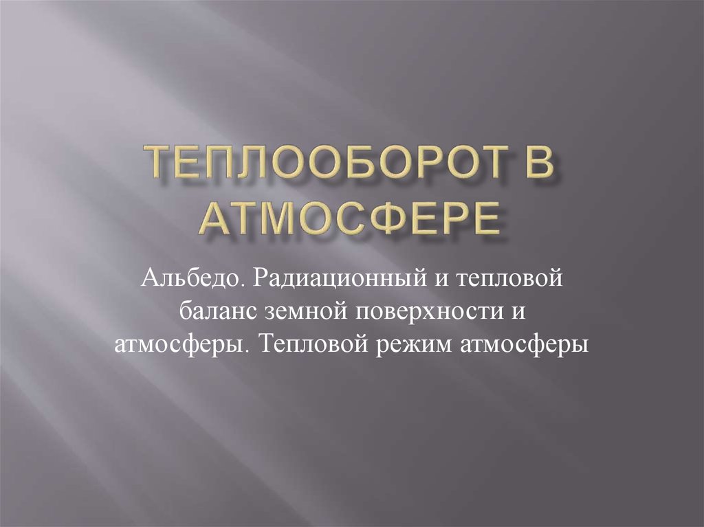 Альбедо. Радиационный и тепловойбаланс земной поверхности и