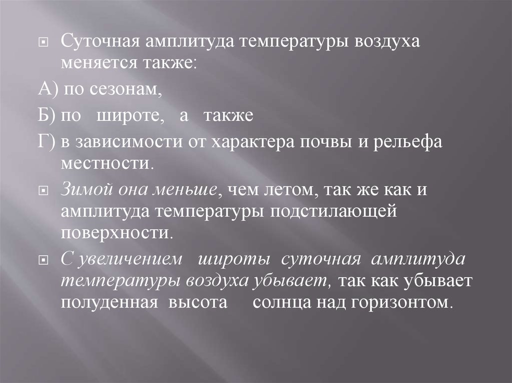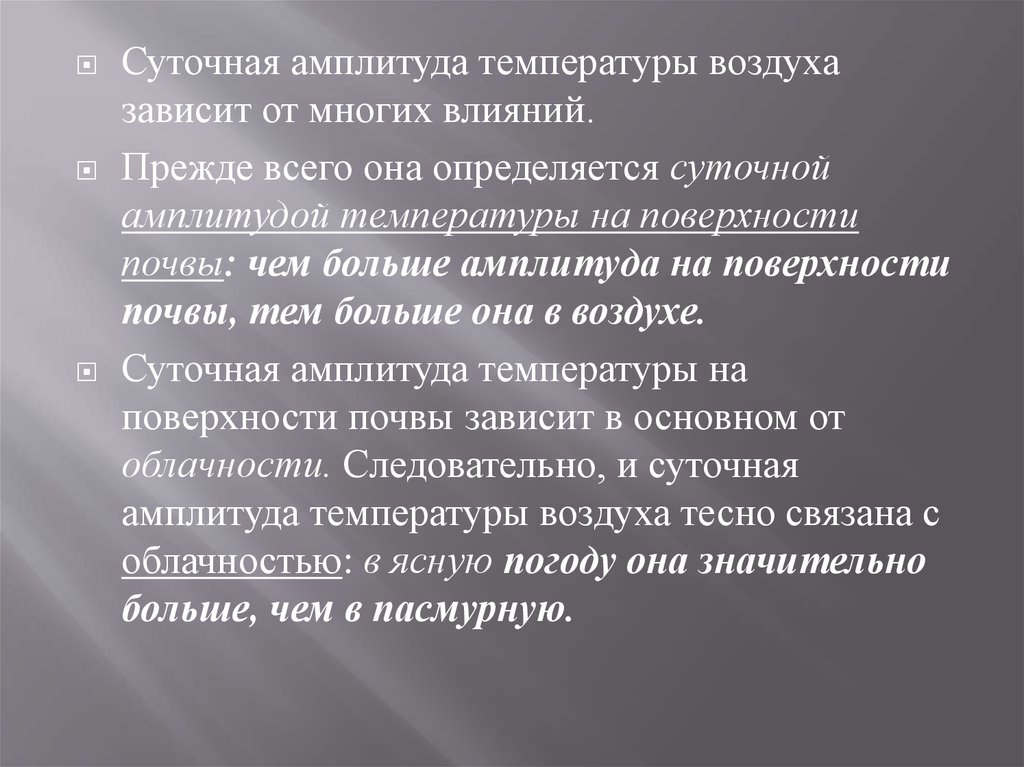 Суточная амплитуда температуры воздухазависит от многих влияний.