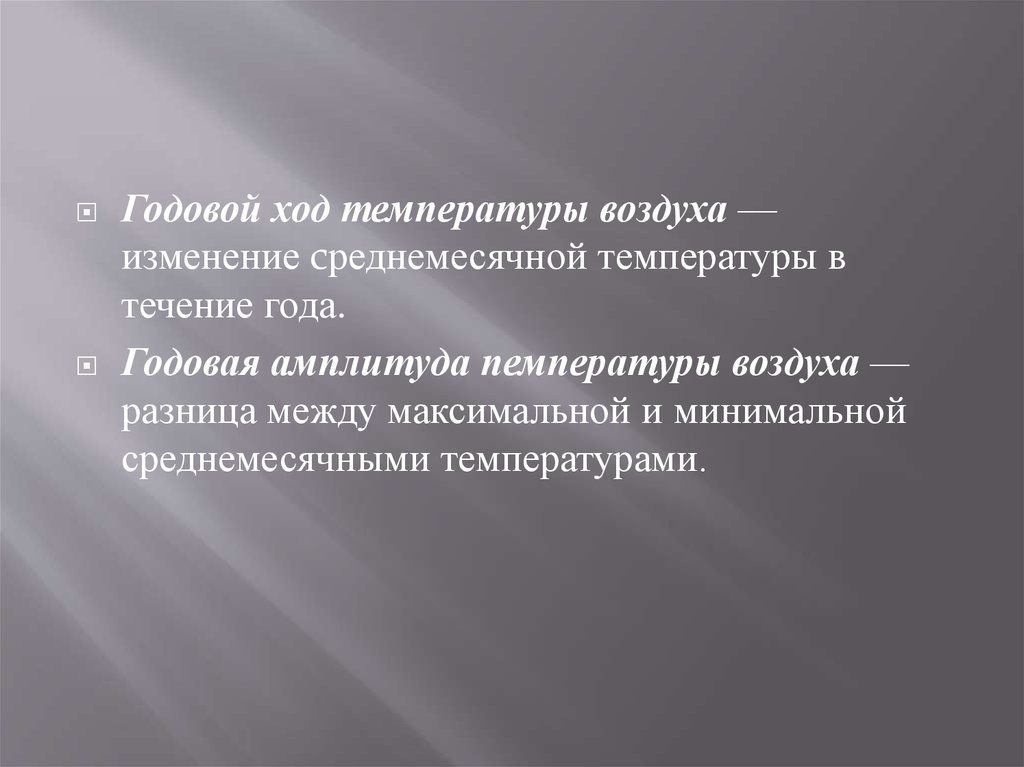 Годовой ход температуры воздуха —изменение cреднемесячной температуры в