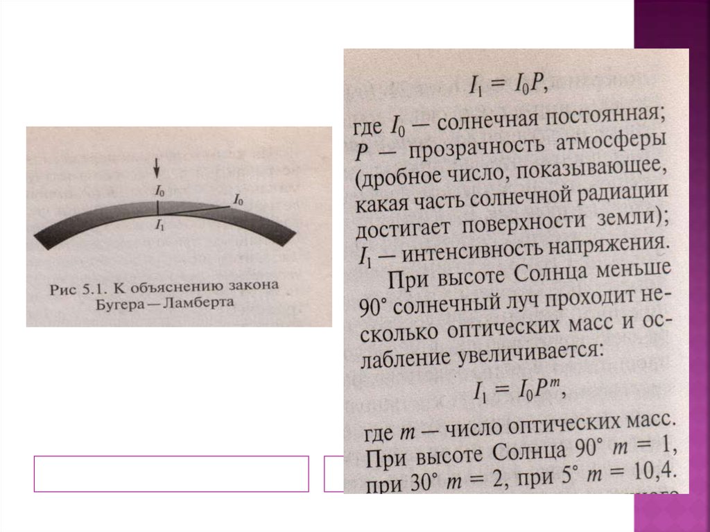 13. Чем меньше угол падения лучей, тем меньше интенсивность солнечной радиации
