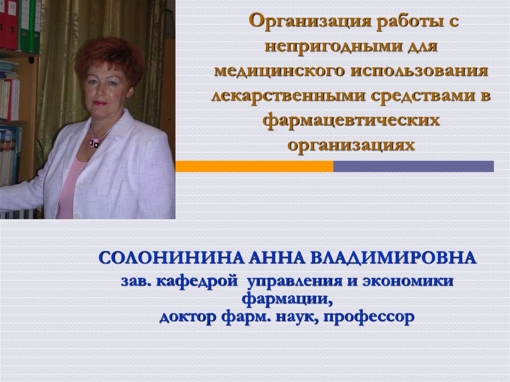 Солонинина А.В., Шумиловских Е.В. Организация работы снепригодными для медицинского использования лекарственными